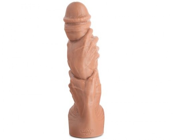Dimensions: Circumference near head (rim): 7.6" / 19.30cm Circumference near middle: 9.8" / 24.89cm Circumference near base: 9.1" / 23.11cm Overall length: 12.6" / 32cm Insertable length: 9.6" / 24.38cm Texture: Realistic skin with heavy vein and wrinkle details Strapon Ring Size: 3" / 7.62cm